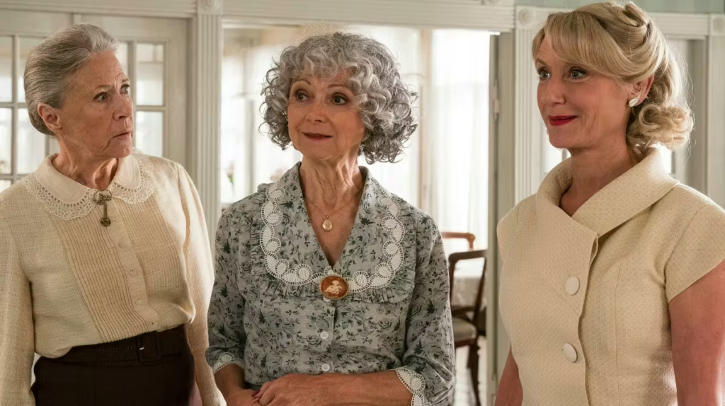 Fru Fjeldsø, Lydia og fru Frigh i “Badehotellet”. Foto: Mike Kollöffel/TV 2